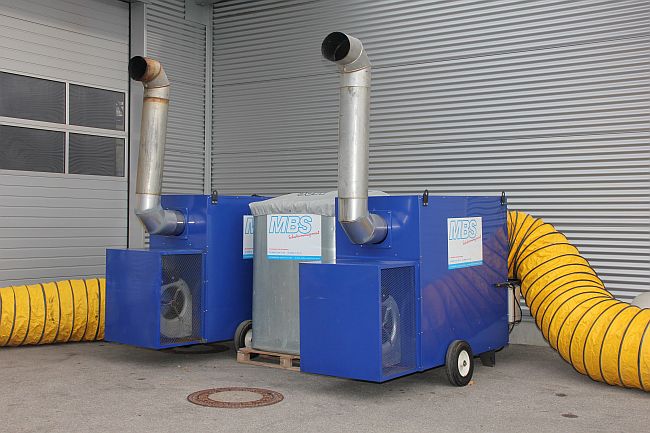 hatte MBS selbstverständlich die kurzfristige Lösung parat. Mittels zweier Ölbefeuerter Warmlufterzeuger, die außerhalb