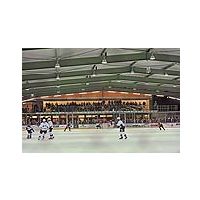 des Eisstadions aufgestellt werden konnten, wurde über Schlauchführungen erwärmte Luft in das Stadion geblasen.